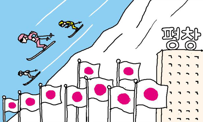 平昌オリンピックの開会式をちょうど1年後に控えた今月9日、日本のNHKニュースは平昌オリンピックを特集で取り扱った。これは韓国KBS放送の特集にも劣らない内容だった。これに対してこの日、韓国のテレビ局各社による平昌オリンピックの取り扱いは、崔順実(チェ・スンシル)問題や口蹄疫(こうていえき)などの後だった。このように日本が平昌オリンピックに多大な関心を示すのは、メダルが期待される有力な人気選手が多いからだ。特に男女のフィギュアスケート、スキージャンプ、スピードスケートでは日本人選手の金メダルが期待されている。ちなみに同じ頃、スキージャンプのワールドカップが開催されていた平昌では、日本の高梨沙羅を応援するため会場は江陵と同じように日本の国旗が数多く振られていた。