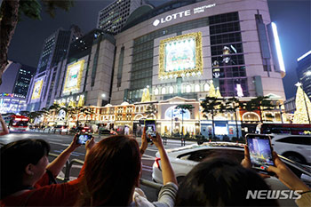 ロッテデパート本店(ソウル市中区)に設置されたクリスマスイベント用の大型ビジョンに、性犯罪を予告するようなメッセージが掲載され、物議を醸している。