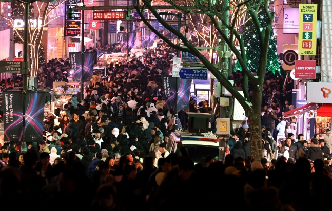 「人が多すぎて歩くのも大変」…クリスマスイブの明洞に9万6000人が殺到(1/2)