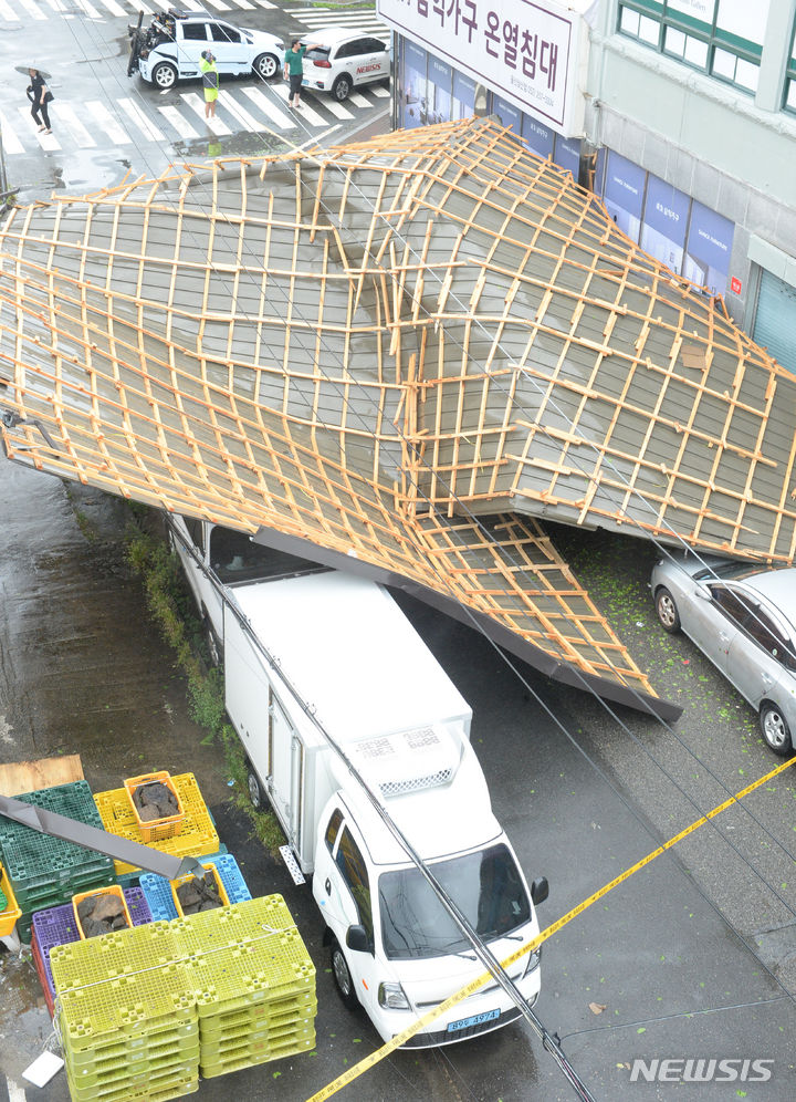 強風で崩れた屋根(1/7)
