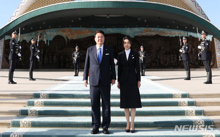 ウズベキスタン独立記念碑を訪問した尹大統領夫妻(1/13)