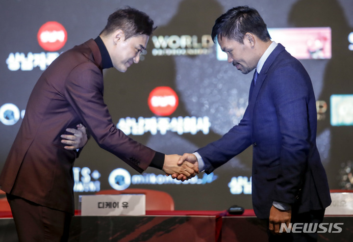 スペシャルマッチを前に対面したマニー・パッキャオとユ・デギョン(4/19)