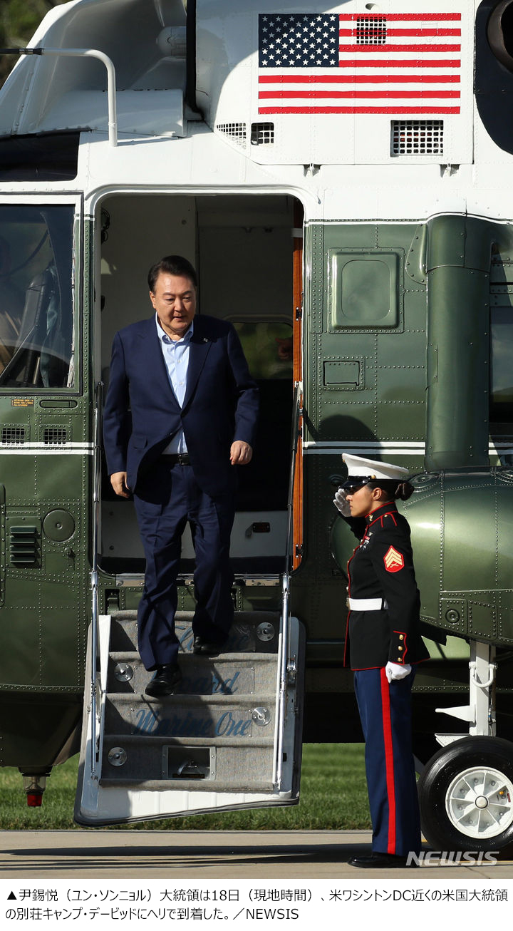 尹大統領、米海兵隊ヘリでキャンプ・デービッド入り…30分後に岸田首相も到着(2/2)