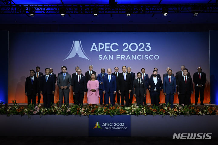 APEC首脳らと記念撮影をする尹錫悦大統領(1/9)