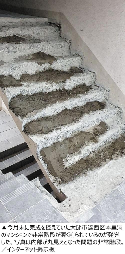 今度は大邱で…完成目前のマンション、強引補修で非常階段が削られモルタルむき出しに(2/2)