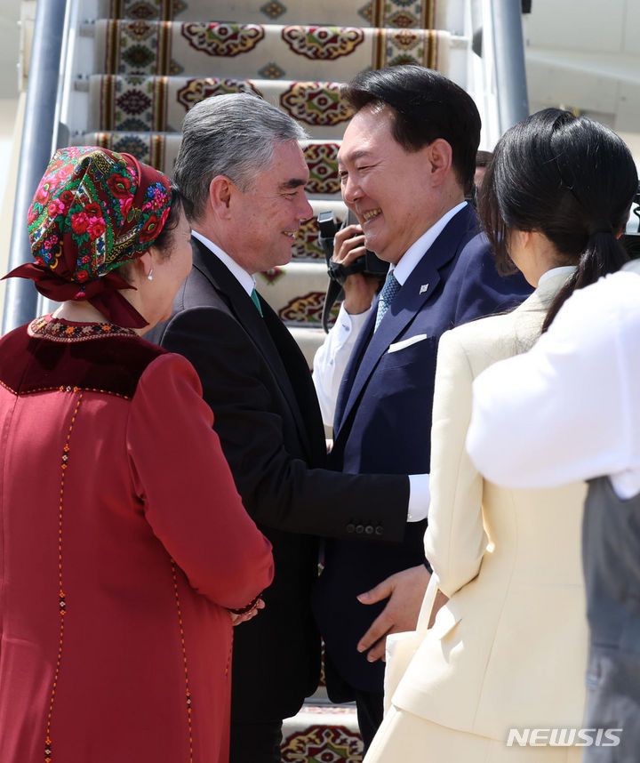 トルクメニスタンのベルディムハメドフ人民評議会議長夫妻に見送られる尹大統領夫妻(4/7)