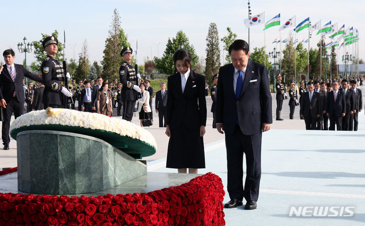 ウズベキスタン独立記念碑を訪問した尹大統領夫妻(12/13)