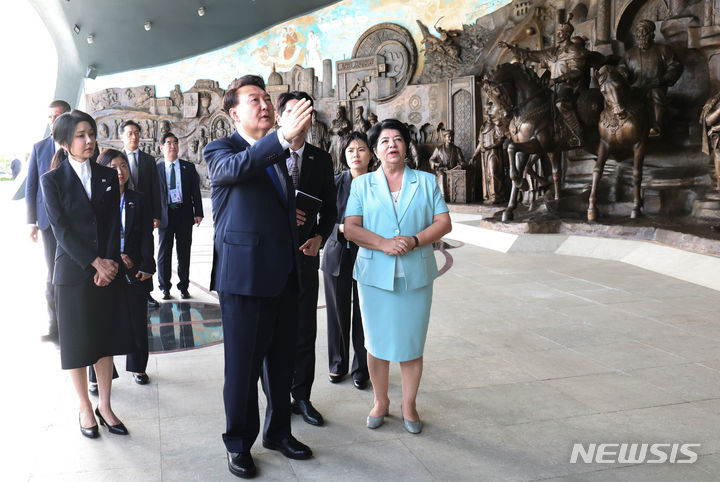 ウズベキスタン独立記念碑を訪問した尹大統領夫妻(5/13)