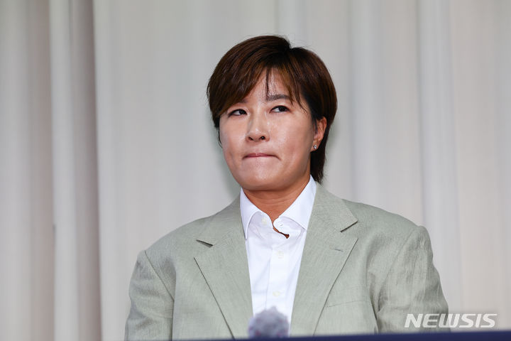 「父親告訴」の記者会見中に涙を流す朴セリ(14/17)