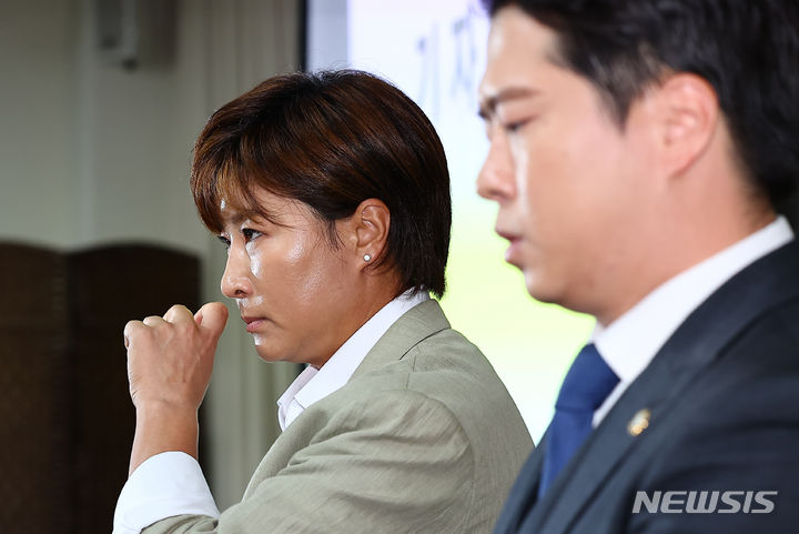 「父親告訴」の記者会見中に涙を流す朴セリ(16/17)