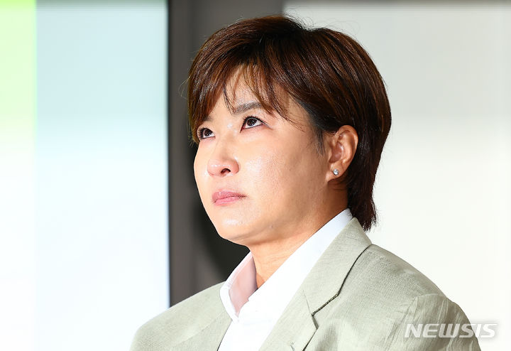 「父親告訴」の記者会見中に涙を流す朴セリ(5/17)