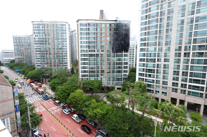江南のマンションで火災 消火活動をする消防隊員 /ソウル(3/10)