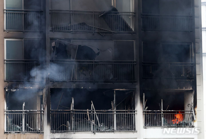 江南のマンションで火災 消火活動をする消防隊員 /ソウル(5/10)