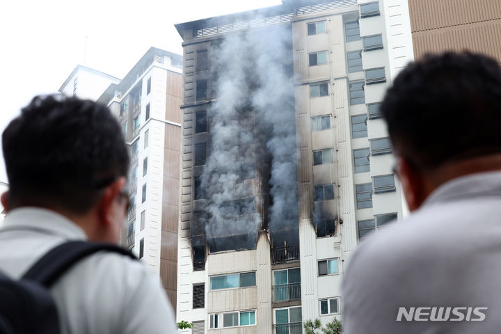 江南のマンションで火災 消火活動をする消防隊員 /ソウル(6/10)