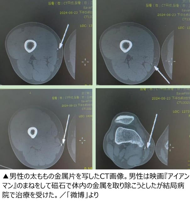 体に金属片が刺さった中国の男性、映画『アイアンマン』まねて磁石で除去試みるも失敗 /湖北省・武漢市(2/2)