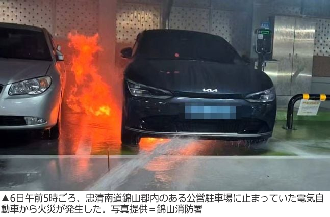 韓国SKオン製バッテリー搭載の起亜EV6から出火…「フル充電状態で充電器が差し込まれていた」 /忠南・錦山(2/2)