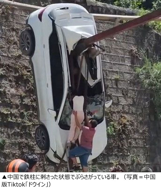 アート作品? 中国・雲南省で鉄柱に刺さって宙吊りになった車が発見される(2/2)