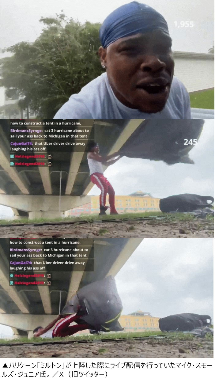 投げ銭目当てに命懸けの生配信、最強ハリケーンが直撃したフロリダで避難命令を無視した米男性に批判殺到(2/2)