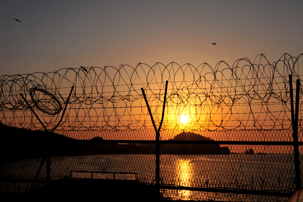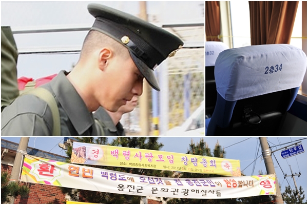 船に乗り波に揺られること約4時間。午後1時近くになって、ようやくペンニョン島の竜機浦船着場に到着した。船着場の前には「ヒョンビンがペンニョン島に来たことを甕津郡民は歓迎します」という大きな横断幕が掲げられていた。おそらく「人気俳優ヒョンビンが海兵隊の一員として守っているペンニョン島」ということをアピールしているのだろう。