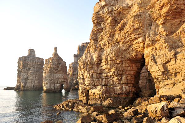 長い年月をかけて荒波に削られた巨大な岩がびょうぶのように広がっている。その横にはゾウやライオン、昇天する竜の形をした岩もある。