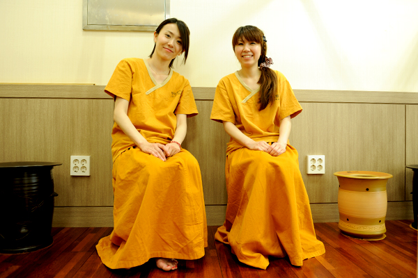 二人はまずヨモギ座薫を体験してみることにした。これは、下腹部の老廃物や脂肪質を取り除き、肥満や婦人病の予防に効果がある。
