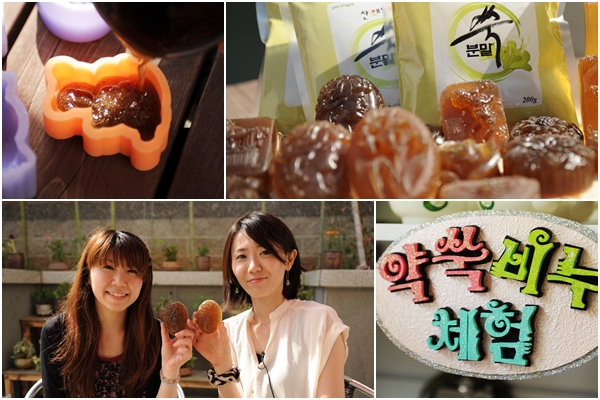 チムジル体験が終わった後、二人は「ヨモギせっけん作り」に挑戦した。二人は「ヨモギでせっけんを作れるんですか」と驚いた様子だった。