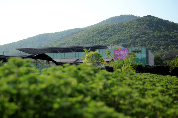 ヨモギ畑を通り過ぎ、ガラス張りの建物「薬用ヨモギ・ウェルガ」に向かった。ここは江華島産のヨモギを使用し、さまざまな料理や体験ができるようになっている。