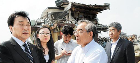 孫代表は同日、津波被災地の宮城県名取市一帯を訪れ、同市の副市長の案内で被害現場を視察し、「一日も早く復旧が進み、災い転じて福となす機会が訪れることを願っている」と述べた。被災地視察には、同党所属の新旧国会議員らが同行した。また、地震発生当時に韓国人の避難先となった仙台市の韓国総領事館も訪れ、職員を激励した。