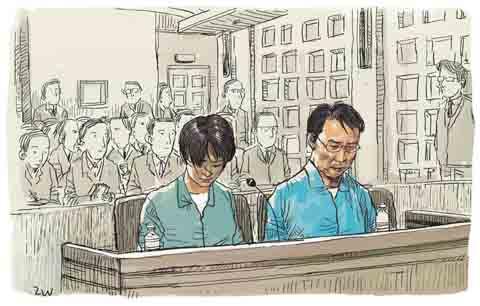 一方、黄緑色の受刑者服をまとったシン被告は、赤く上気した表情で、うつむいたまま法廷に入場し、終始顔を上げることはなかった。ひざの上で両手の指を絡ませ、絶えず親指を動かしていた。