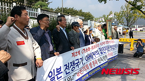 壇君民族平和統一協議会は21日朝、ソウル市鍾路区の政府庁舎前で会見を開き、日本における安保法の成立とこれに伴う米国の対応を批判した。