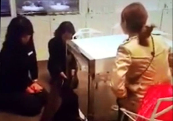 16日にSNS上に掲載された1分27秒間の動画には、黒の制服を着た店員2人がひざまずいており、ベージュのコートを着た女性客がその向かい側のいすに座って怒鳴っている様子が写っている。ポケットに手を入れたままの女性客は、土下座した店員たちをぞんざいな言葉遣いで責め立てている。