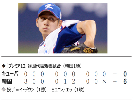 4日、高尺スカイドーム(ソウル市九老区)オープン試合として行われた、世界ランキング上位12カ国が参加して優勝を争う野球の国別対抗戦「プレミア12」韓国代表とキューバ代表の親善試合は、当初は金広鉉(キム・グァンヒョン)=SKワイバーンズ=のテスト的な舞台として注目されていた。これまでの国際大会で「日本キラー」として名をはせてきた金広鉉の調子に関心が..