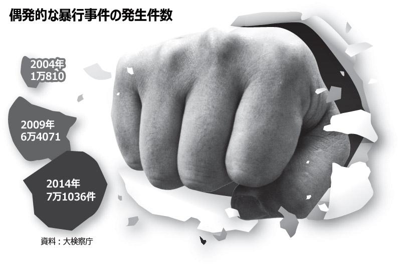 韓国社会で、ちょっとした怒りを抑えられないことによる犯罪が深刻化している。体がぶつかったから、相手にじろじろ見られたからといった理由で、むやみに人を殴る事件が各地で発生している。大検察庁(日本の最高検察庁に相当)によると、2004年に1万810件だった偶発的な暴行事件の件数は、10年後の2014年には7万1036件と、5倍以上に増加した。「カッとなって」人を殺害した事件も、2014年には347件に達した。東国大学警察司法大学院のイ・ユンホ教授は「ささいな対立によって怒りを覚え、暴行に及んだり、殺人にまで発展したりするケースが急増している」と指摘した。