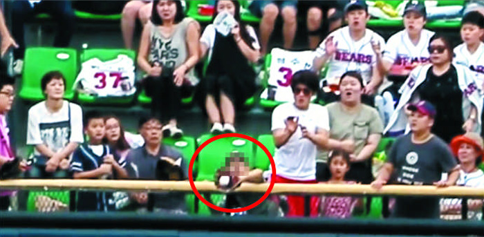 0-3とリードされたサムスン4回表の攻撃。1死1塁という場面でイ・スンヨプが斗山の投手ユ・ヒグァンを相手に打った球はたかなり大きく、ライト・フェンスに向かって飛んでいった。一瞬、歓声が上がった。ところが、勢いよく1塁を踏んで2塁に向かっていたイ・スンヨプは突然速度を落とし、天を仰いだ。イ・スンヨプの打球はライト・フェンス手前にグローブを差し出していた子どもに取られてしまったのだ。