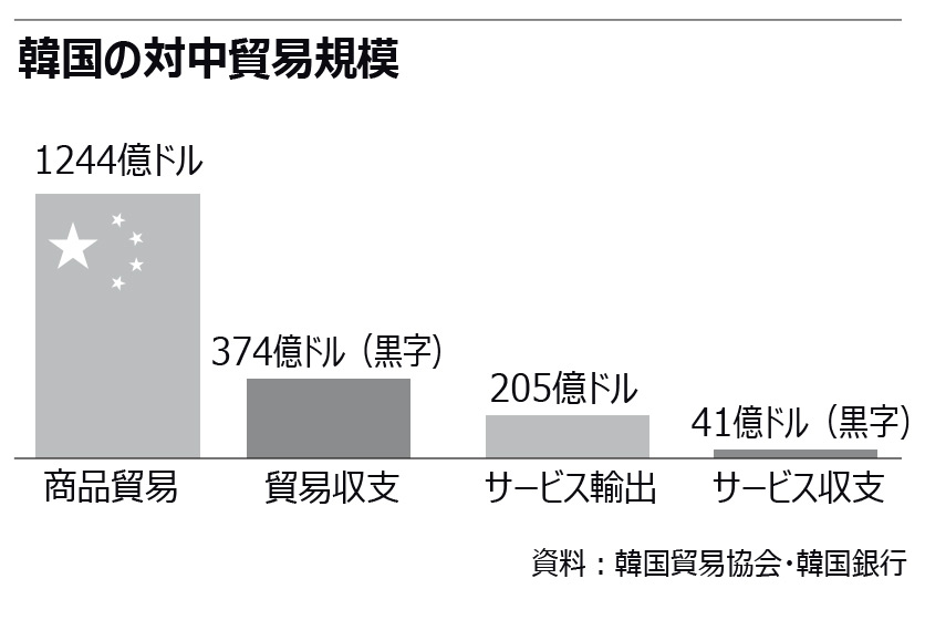 中国のサービス貿易は毎年急成長し、2020年には1兆ドルを突破すると予想される。しかし、韓国の対中サービス輸出は昨年時点で205億ドルで、商品輸出の1244億ドルの16%にとどまっている。韓中FTAで中国が韓国に完全に開放したサービス分野は、155業種のうちデータプロセッシング、金融情報提供・交換サービスなど6業種(3.9%)だけだ。残る84業種は限定的に開放。教育・国防など65業種(42%)は開放されなかった。両国が既に開放したサービス分野でも相互に最恵国待遇は認めていない。