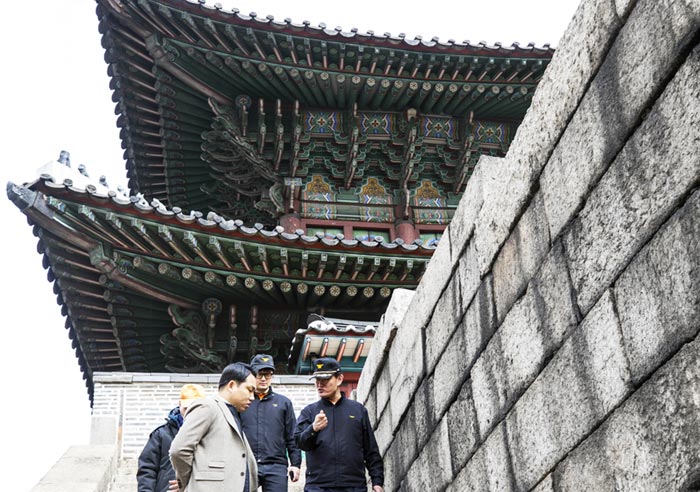 興仁之門には合計12人の鍾路区庁所属安全警備員が3交代で24時間常駐しているほか、防犯カメラ12台で興仁之門を監視している。しかし、この日は男が素手で城壁を登って興仁之門内部に侵入するのを阻止できなかった。当時勤務していた安全警備員は「未明で暗く、12ある画面を同時に見ていなければならなかったので発見できなかったのだと思う」と話している。