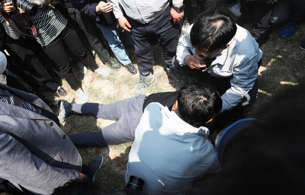 会社の関係者らがイ社長を抱えて起こそうとしたが、遺族が強く反発したため起こせなかった。