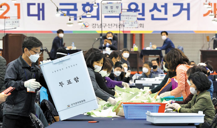 -保守系のユーチューバーはソウル・仁川・京畿地域で民主党と統合党の事前投票での得票率が全て63対36だった点を巡り、「不正があった」と主張しているが。