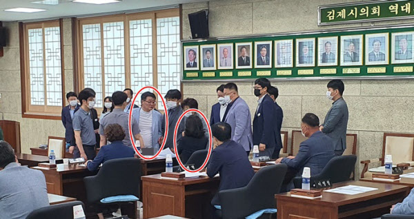 全羅北道金堤市議会で1日、不倫スキャンダルで物議を醸した議員が本会議場で舌戦を繰り広げて衝突した。市議会では同日、議長団を選出する予定だったが、両議員の口論で議事に入れなかった。