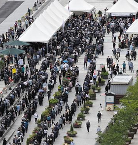 ▲今月14日午後、ソウル市鍾路区光化門広場に用意された故ペク・ソンヨプ将軍の市民焼香所。市民が弔問のためテント前に並んでいる。/写真=コ・ウンホ記者