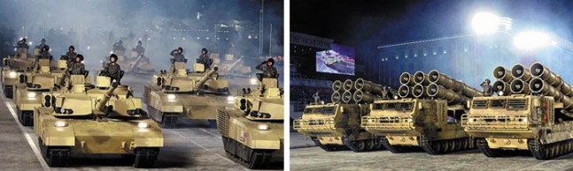 亀城における戦車工場建設の動きは、今年10月の労働党創建75周年記念軍事パレードで新型の兵器が数多く公開された時期と一致する。当時、北朝鮮はこれまで試験発射によって一部のみを公開していたイスカンデル、エイタクムス、新型放射砲などを軍事パレードで突然公開した。これらのミサイルは車輪型ではない「軌道型」の車両に搭載されていた。車輪型車両は主に舗装された道路を移動するが、軌道型車両は山林や山岳地帯など険しい地形においても移動が可能だ。衛星による追跡が不可能な山林や山岳地帯に姿を隠しておけば、奇襲作戦も可能になる。そうなると移動式発射台を事前に探知・攻撃する韓国軍の「キル・チェーン」が無力化することも考えられる。