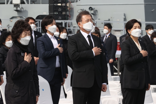 「西海守護の日」は、北朝鮮が起こした第2延坪海戦、「天安」爆沈事件、延坪島砲撃挑発で戦死した国軍将兵らを追悼するため、2015年に国家記念日に指定された。文大統領が記念式典に出席したのは、就任以来、昨年に続いて今年が2度目だ。