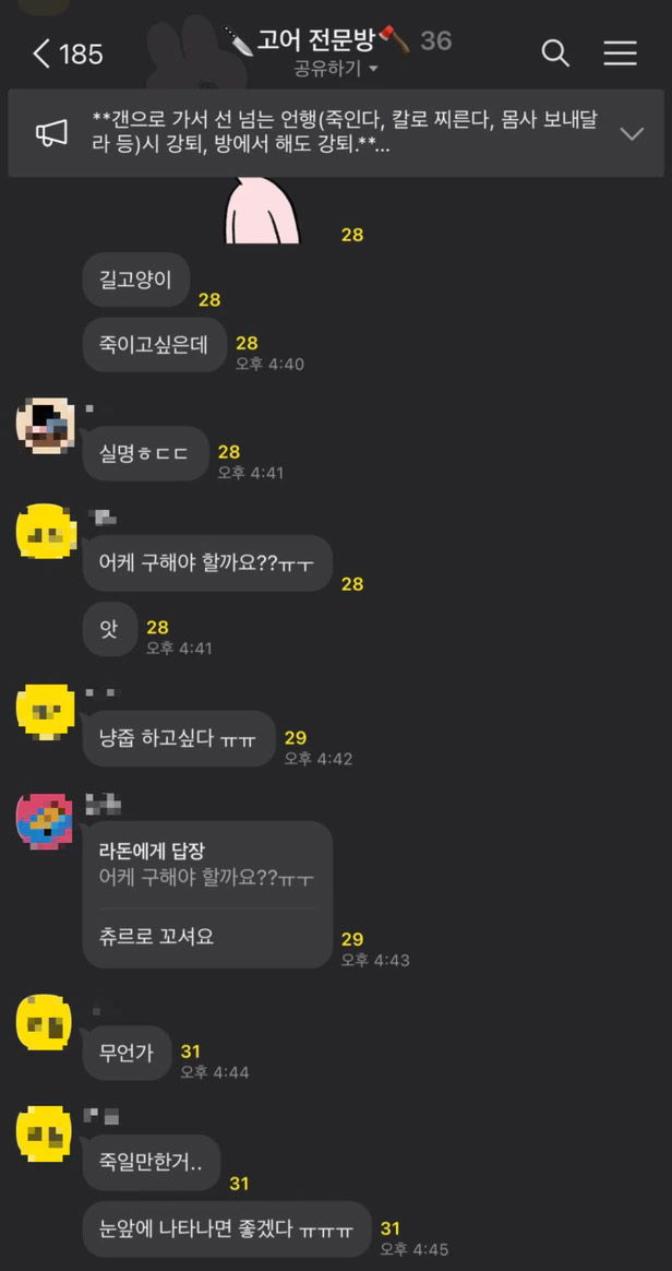 ソウル城東警察署は11日、「動物版n番部屋」として知られるカカオトーク(無料メッセージ&通話アプリ)のオープンチャットルーム「ゴア専門部屋」の参加者約80人について、全数調査を実施していると発表した。警察によると、この部屋の参加者約80人のうち、数十人が未成年で、中学生も含まれているという。