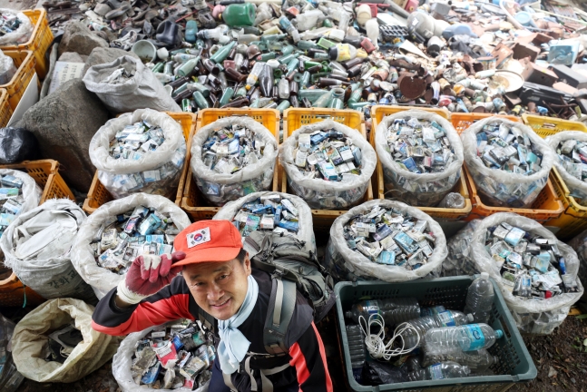 まだ日が昇る前の5月22日早朝4時、ソウル市江西区の開花山でユ・ヨングンさん(61)がトングと複数のごみ袋を手に山に登り始めた。ごみを見つけるたびに全て拾って袋に入れたため、準備したごみ袋はたちまちいっぱいになった。天気が良くない日も毎日のようにごみ拾いを続けるユさんは、自らが住むソウル市江西区傍花洞周辺で18年にわたり環境浄化活動を続けている。そのため周辺住民はユさんを「環境大統領」と呼んだりする。