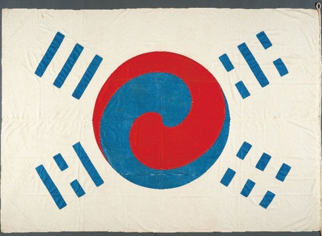▲デニー太極旗(1890年ごろ)。韓国国内で最も古い実物の太極旗だ。/写真=文化財庁