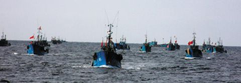 ▲ニベの漁場である全羅南道新安郡の黒山島付近で操業中の中国漁船。/写真提供=木浦海洋警察