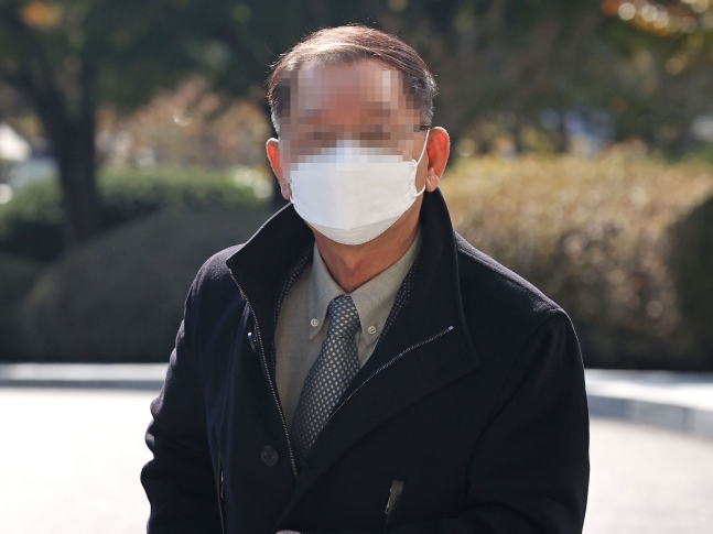 ▲城南市の大庄洞開発を巡る優遇疑惑に関連し、検察の聴取を受けている黄武性・城南都市開発公社初代社長が24日午後、参考人として、ソウル中央地検に出頭した。/聯合ニュース