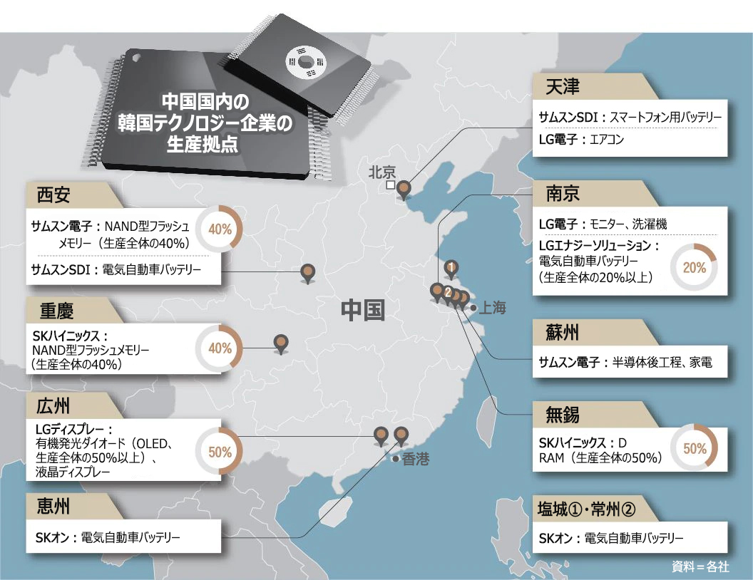 【図】中国国内の韓国テクノロジー企業の生産拠点
