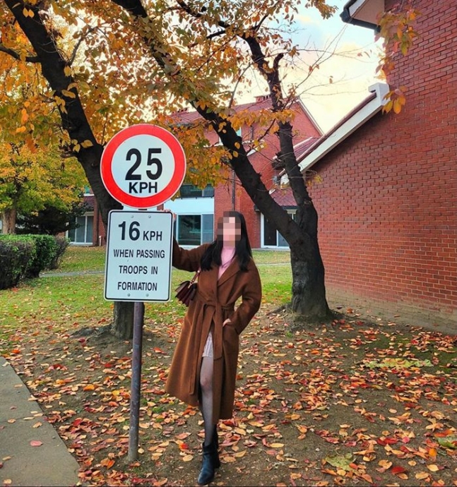 16日昼12時30分ごろ、ソウル市竜山区にある西氷庫駅近くの通り。制限速度を表示した交通標識の後ろに30人余りが並んでいた。「25」と書かれている丸い標識の下には「隊列を組んで通過する際は制限速度時速16キロメートル」という意味の英文が書かれていた。並んでいた人々は、自分の番が来ると標識の前の歩道に座ったり、標識に手を添えて立ったりして写真を撮っていた。