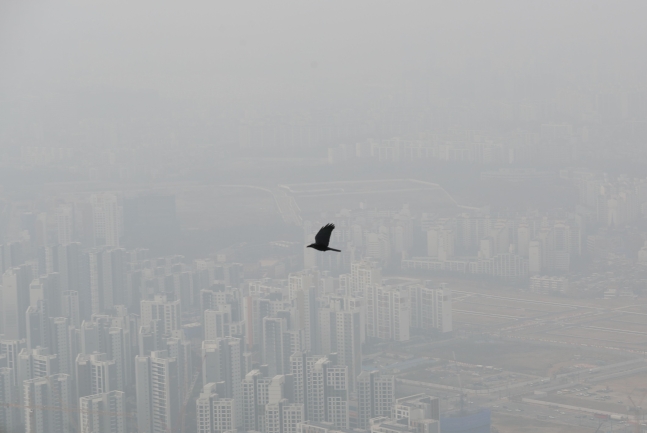 この週末の二日間、韓国全土は中国から来た高濃度の粒子状物質で覆われた。中国では今月から石炭暖房が本格的に始まっている上、大気の停滞により韓国国内で発生した粒子状物質まで重なり、1時間当たりの微小粒子状物質(PM2.5)は全国各地で「非常に悪い(1立方メートル当たり76マイクログラム以上)」を記録した。空が灰色に見えるほどの状態だ。
